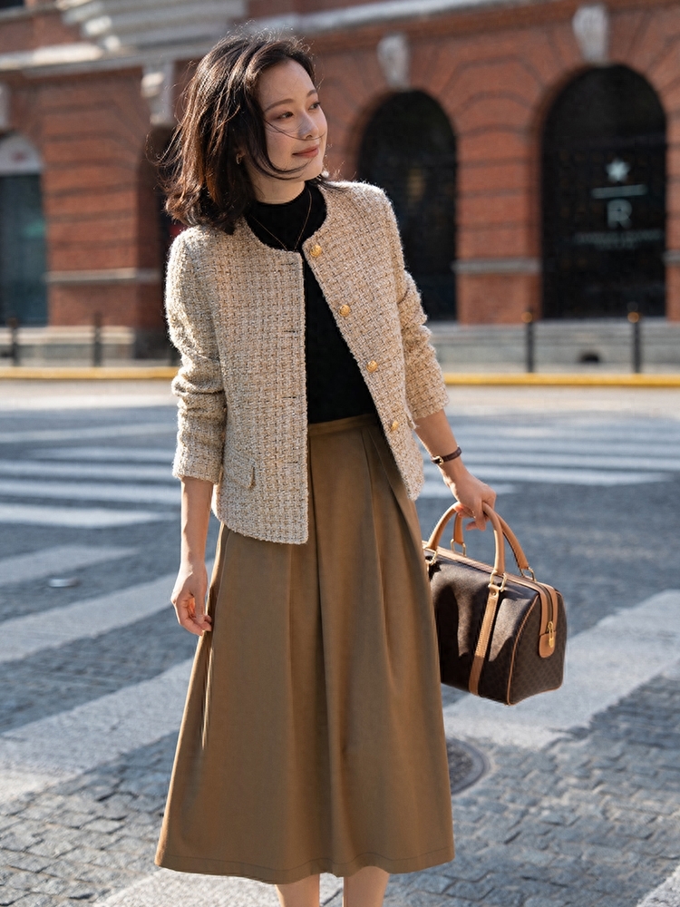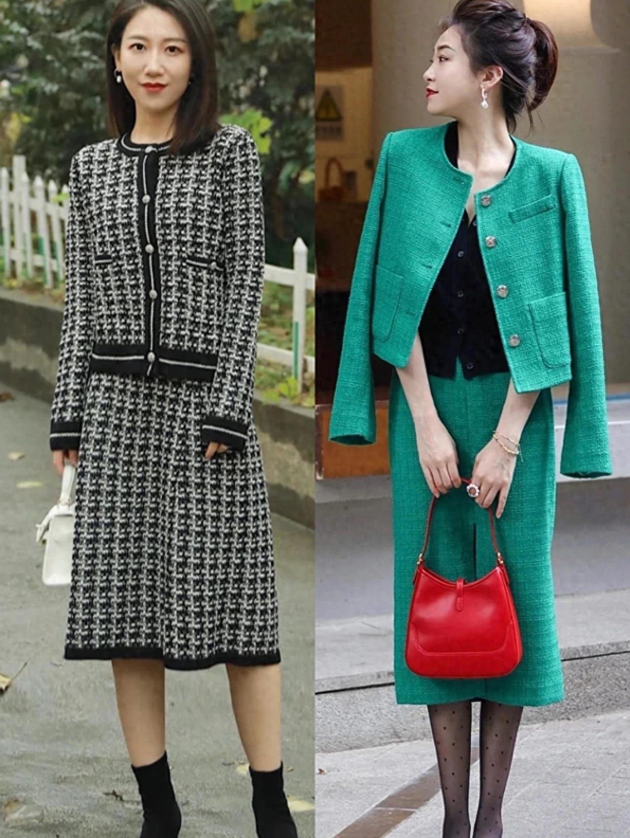 圭臬粗花呢小香外衣搭配半身裙和西裤是一种优雅、高等且恰当通勤文静的搭配。这种搭配不仅凸起了女性的柔好意思和优雅,还闲逸出一种简洁干练的气质。同期,通过高明地独揽神志和格式的对比与呼应,举座造型愈加前卫考究。