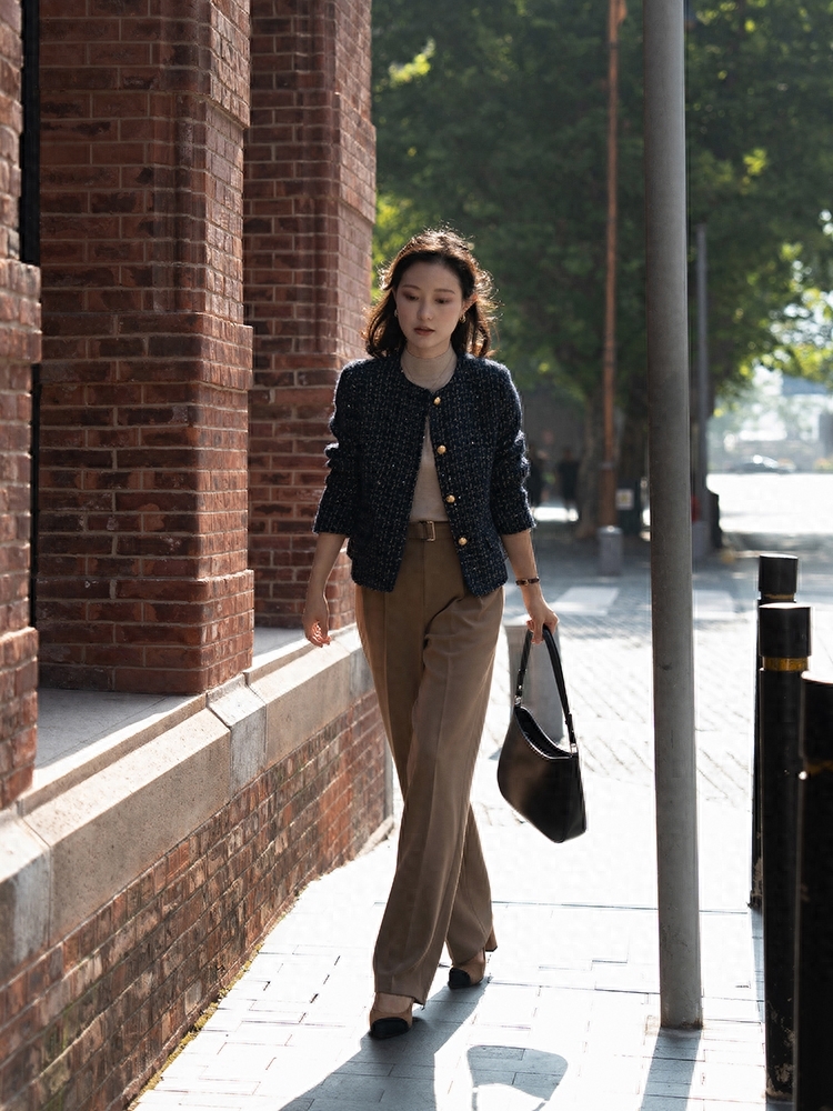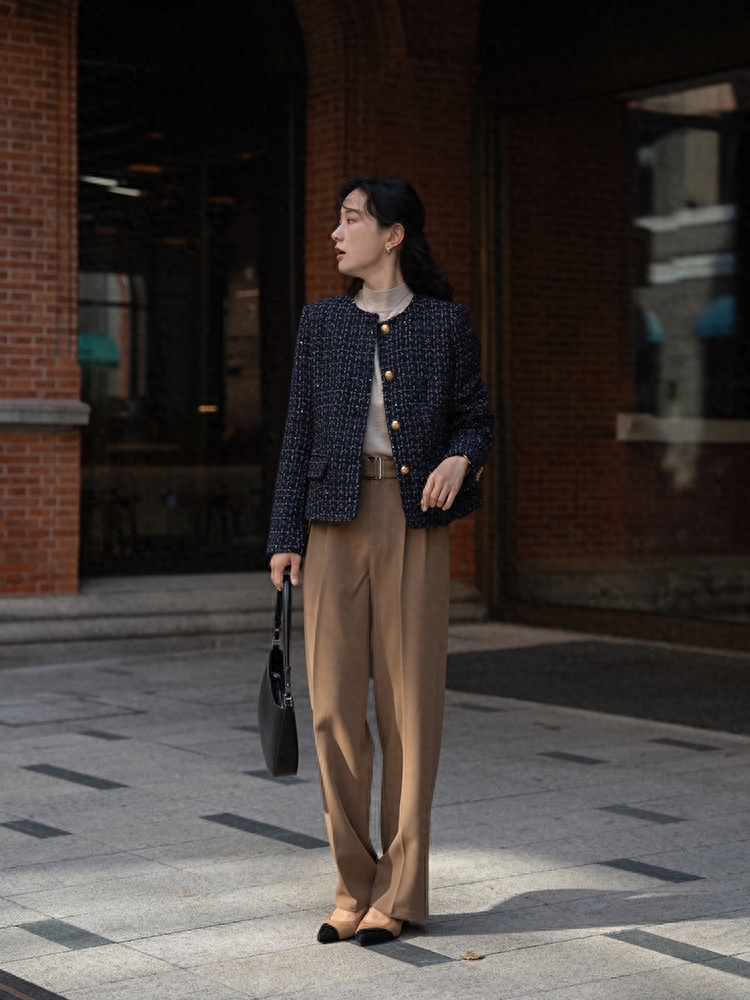 同期,西裤亦然一种非常恰当与小香外衣搭配的单品。西裤的挺括感和线条感与小香外衣的柔嫩感酿成了圆善的对比。这种搭配既展现了女性的柔好意思,又不失干练的气质。不错选用一款修身缱绻的西裤,以凸起女性的腿部线条,同期保持举座造型的均衡感。秋冬节约高腰直筒阔腿裤,在神志方面,不错选用与小香外衣或半身裙相呼应的神志,以保持举座造型的一致性。