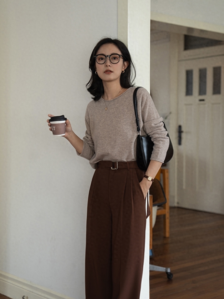 2. 诚实衫+阔腿裤这种搭配形貌比拟恰当秋冬季。不错选用一件宽松的诚实衫搭配一条高腰阔腿裤,这么不仅非常兴隆,还随意拉长腿部线条,显高又显瘦。需要轮廓的是,诚实衫的神志应该与阔腿裤的神志掌握或疏浚,这么愈加有举座感。